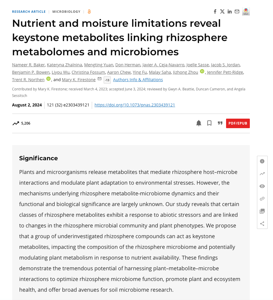 Paper alert! Nutrient and moisture limitations reveal keystone metabolites linking rhizosphere metabolomes and microbiomes