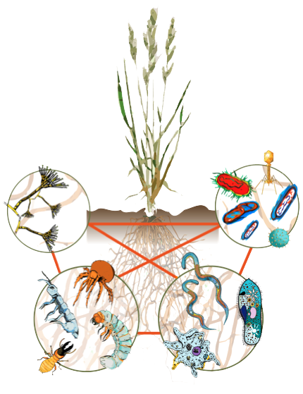 Soil can be described as a massive living entity with a similarly immense number of associated organisms where numerous populations of protists, nematodes, arthropods, plants, and their symbionts, represent critical biological compartments that “collaborate” to facilitate nutrient and energy transfer impacting all types of processes occurring in soil. However, little is known about how environmental stressors affect food web composition, trophic interactions, and the extent of their impact on ecosystem processes and resilience.